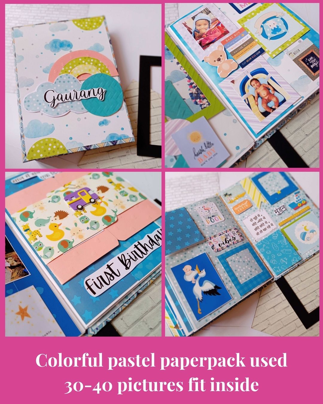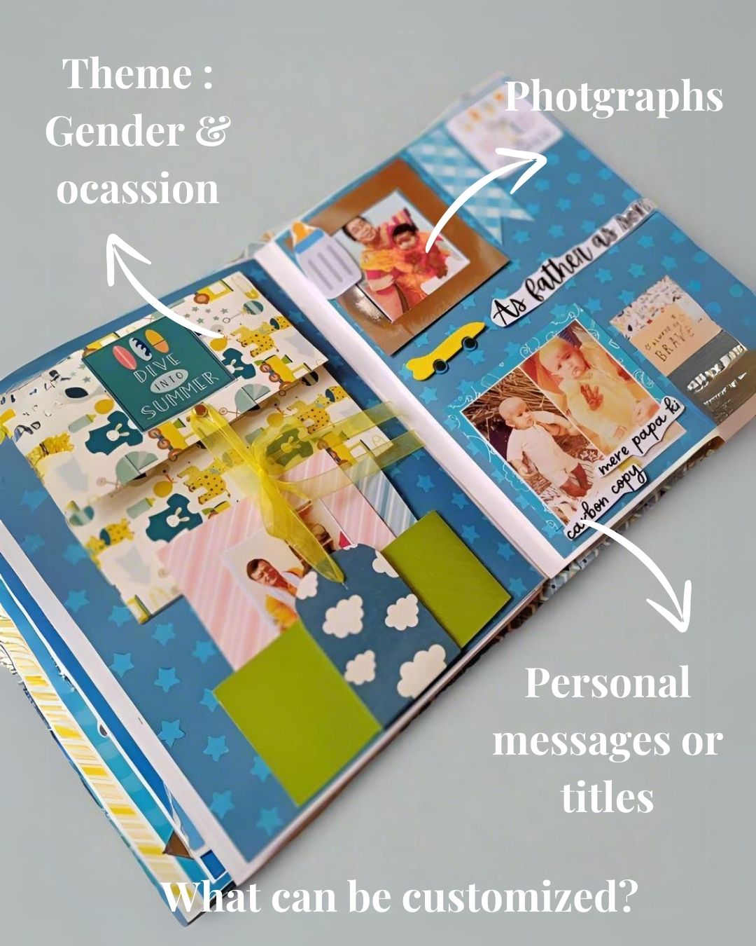 नीले रंग में बेबी बॉय स्क्रैपबुक | तस्वीरों के साथ वैयक्तिकृत बेबी एल्बम