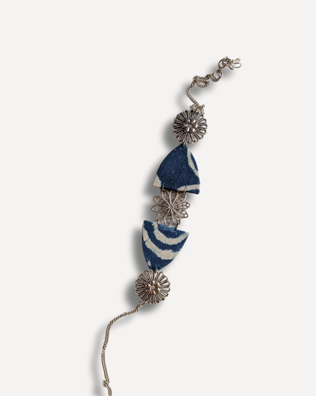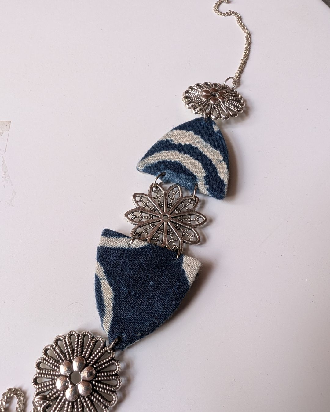 ऑक्सीकृत चांदी में इंडिगो ब्लू प्रिंट चोकर