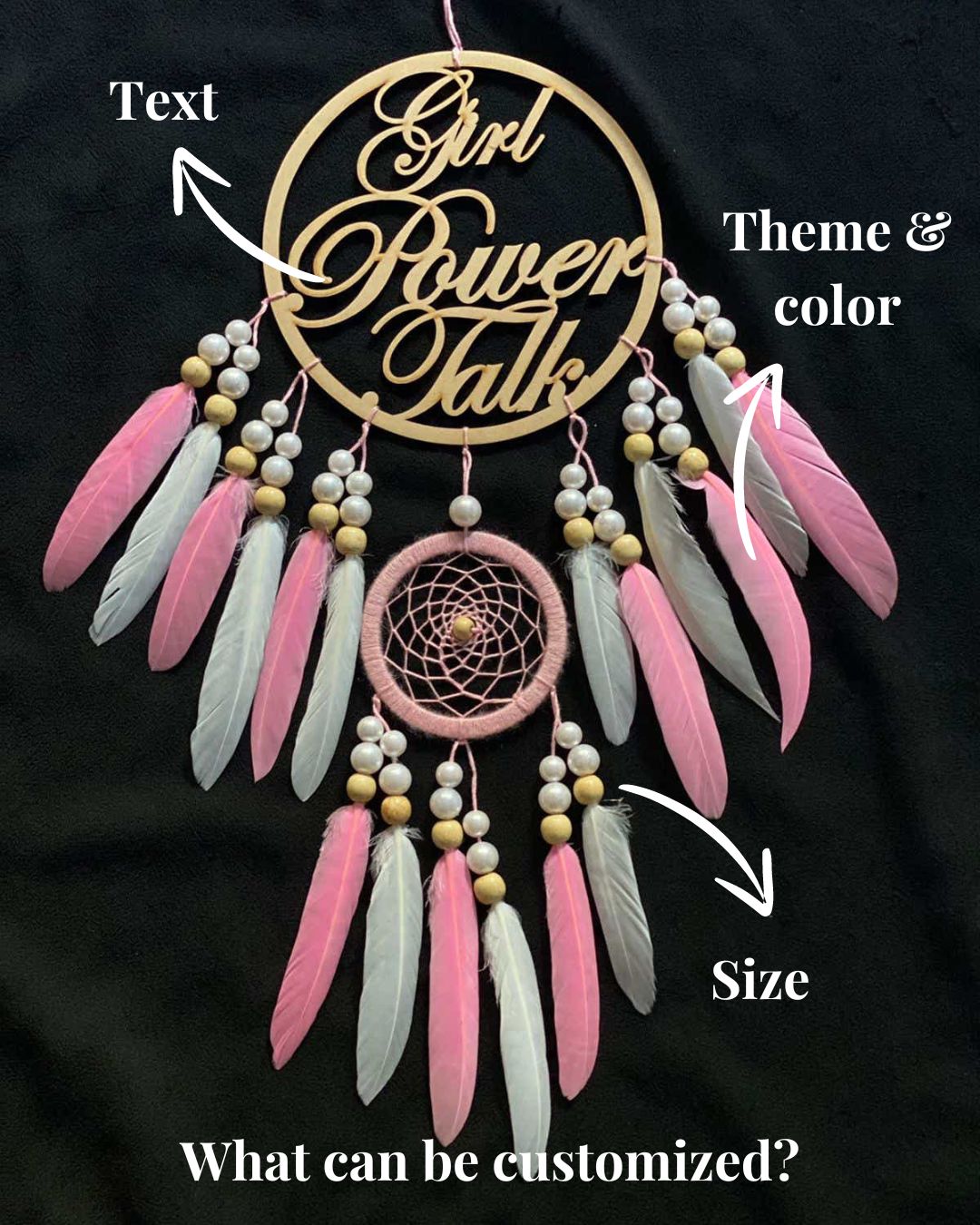 The Personalized Feather Name Dreamcatcher lets you customize the theme, color, text, and size, making it a unique and meaningful decoration for any space.