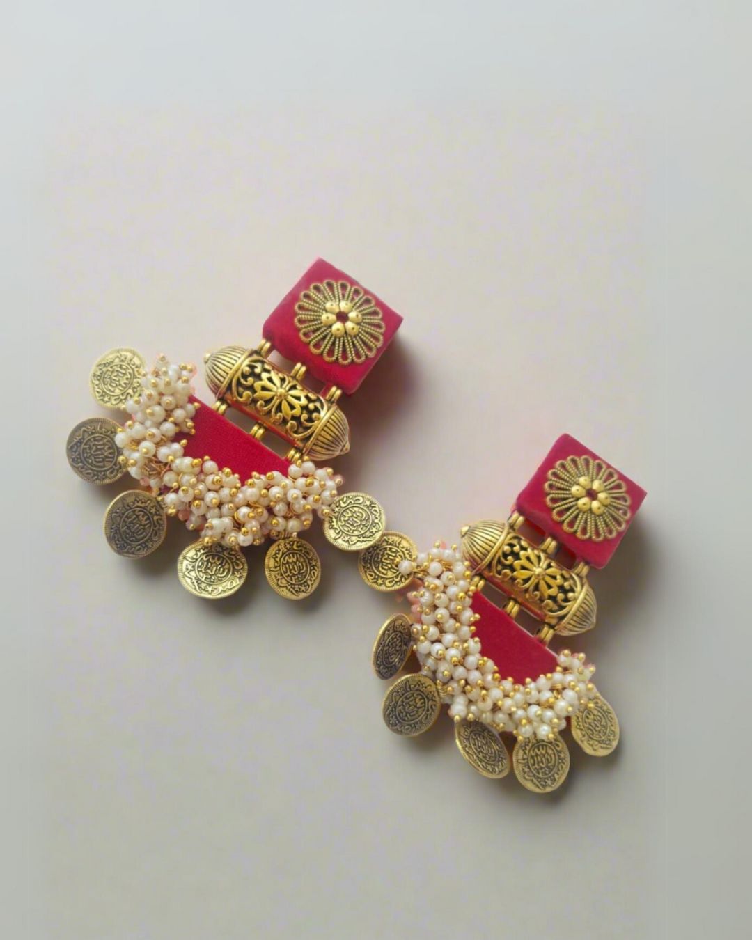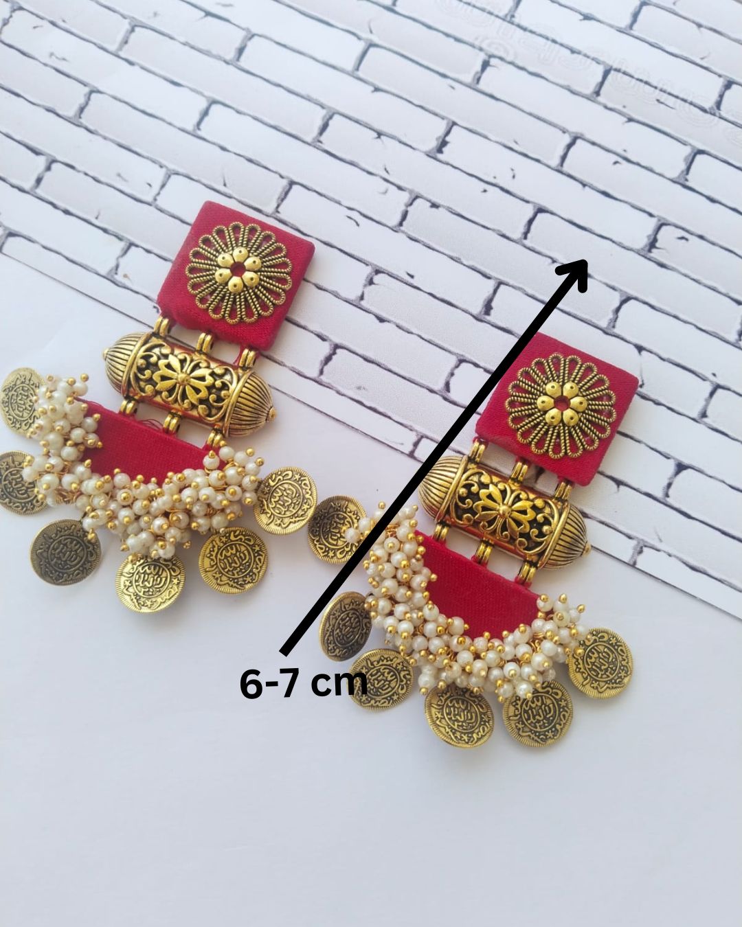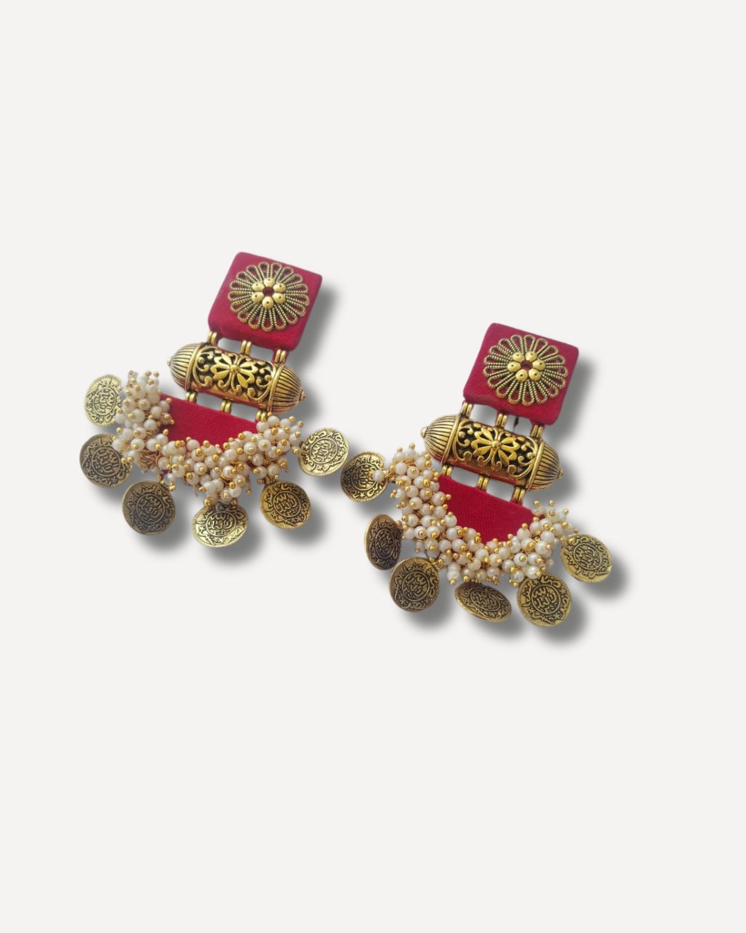 महिलाओं के लिए गर्म लाल भारी सिक्का फैब्रिक झुमका