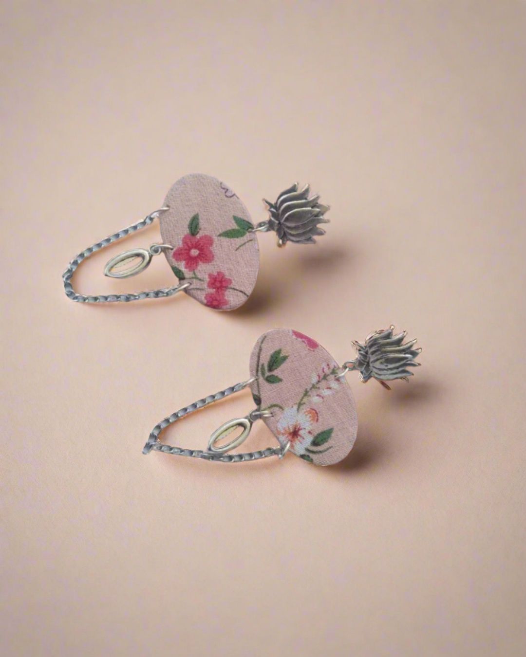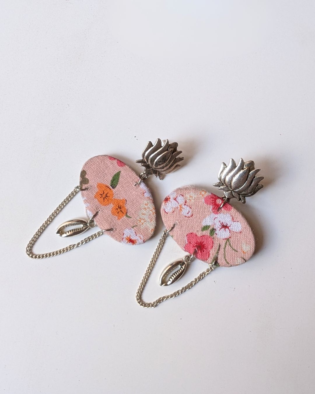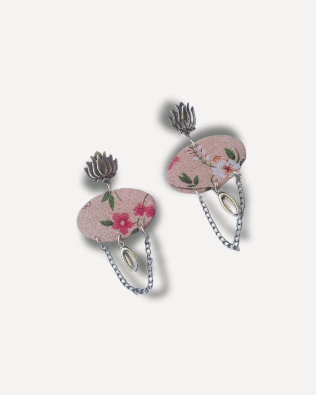 महिलाओं के लिए सिल्वर चेन इयररिंग्स के साथ कमल पुष्प मुद्रित