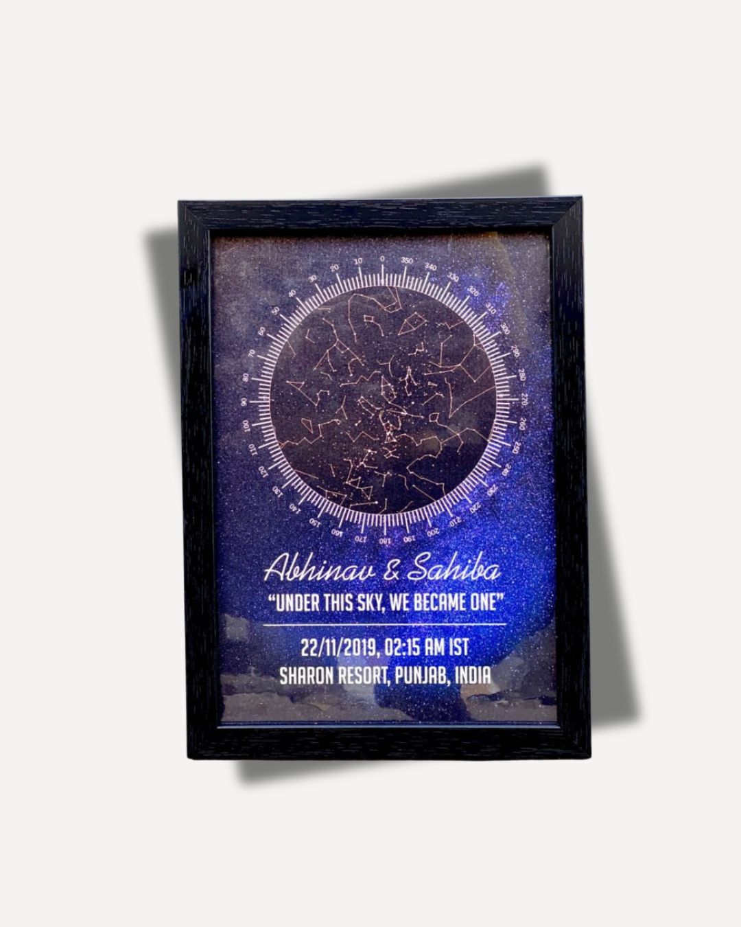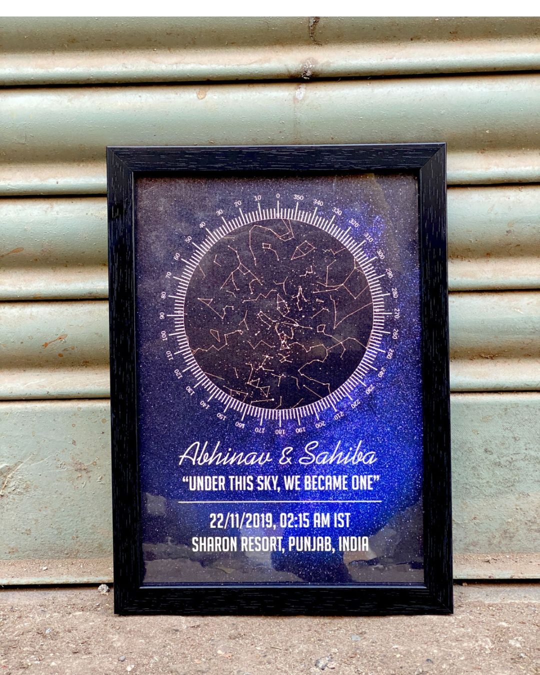 The map shows the arrangement of constellations in the sky for a specific date and time. It's one of the most romantic ways to express your feelings about that special day and the moment you met your special someone.