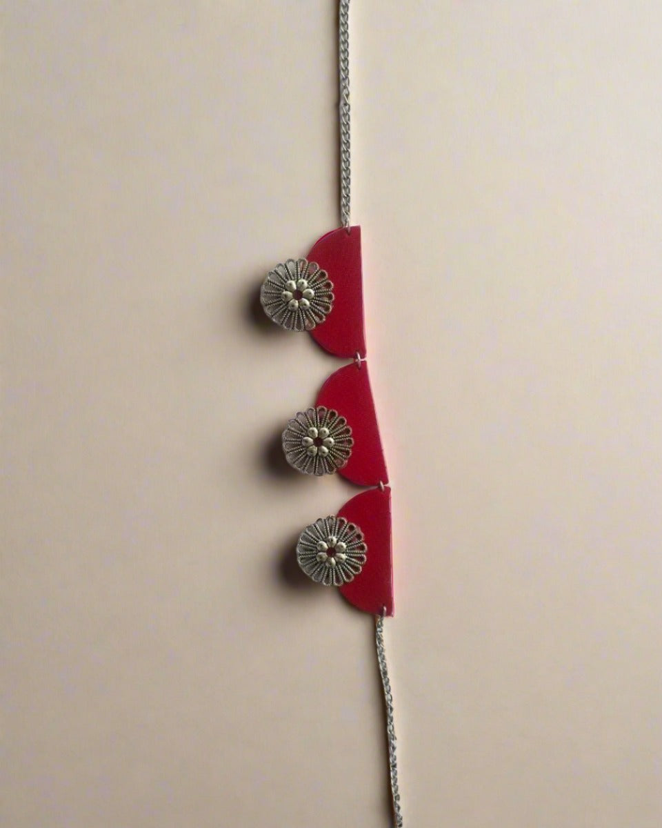 महिलाओं के लिए लाल और ऑक्सीडाइज़्ड सिल्वर चोकर