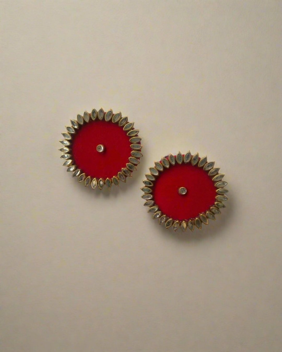 कुन्दन बॉर्डर के साथ लाल स्टड इयररिंग्स