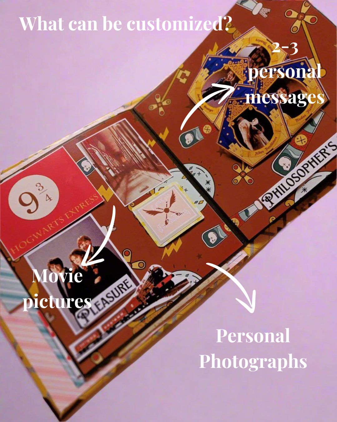 Create a Gryffindor Photo Scrapbook with 12-14 customizable layouts, featuring movie stills, personal photos, Gryffindor house colors, quotes, and moments that highlight your love for the house, all while capturing your unique Gryffindor spirit.