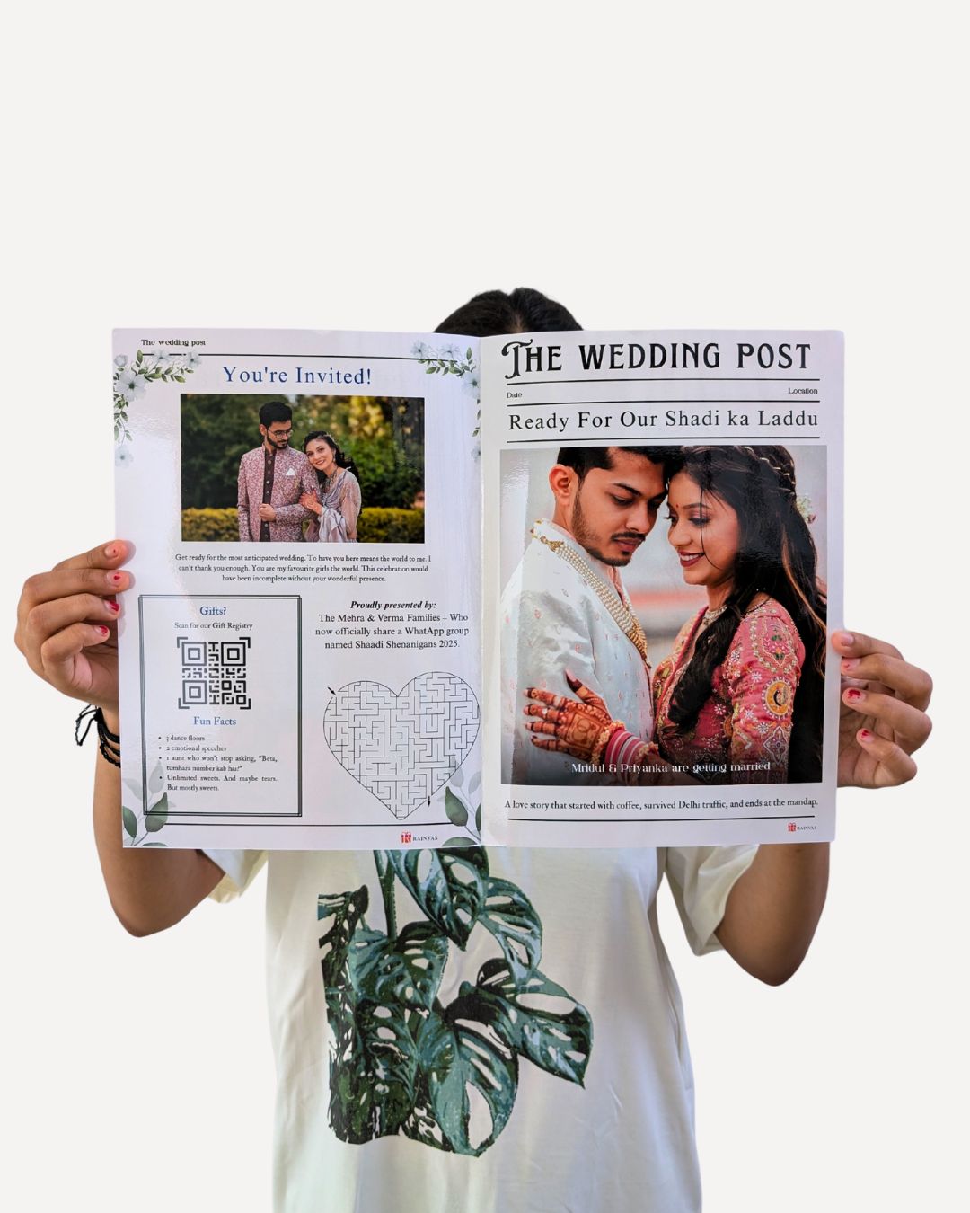 Make your wedding unforgettable with a personalized newspaper invite, featuring custom headlines and your love story, all in a unique, charming design!