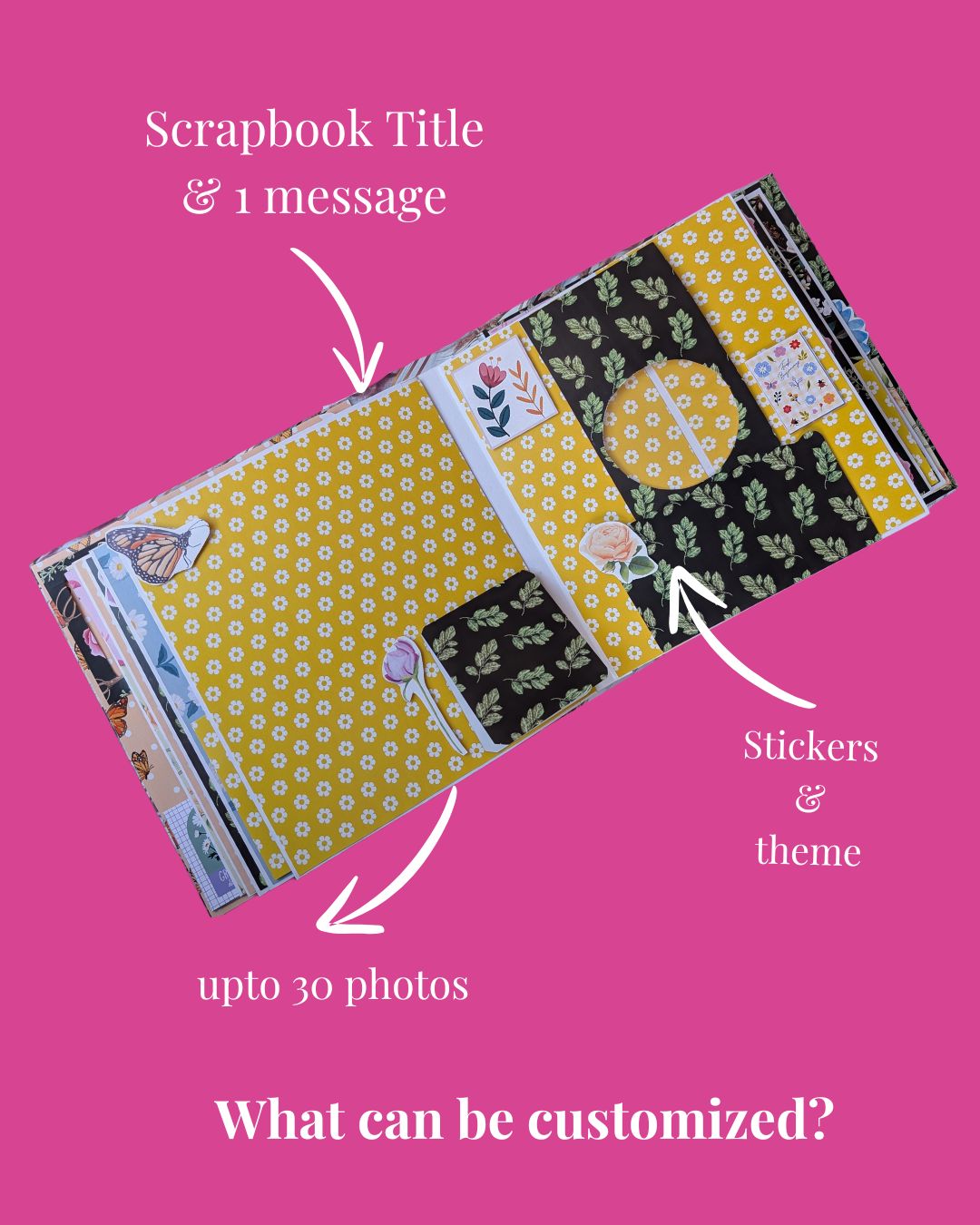 Create a Floral Keepsake Photo Album with upto 60 photos can be added, 12-14 customizable layouts, featuring beautiful floral designs, soft pastel colors, personalized messages, and cherished memories, all designed to highlight special moments and create a timeless, elegant keepsake.